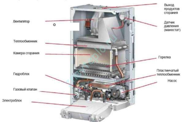 Бесперебойное функционирование агрегата возможно только в том случае, если все составляющие модули будут работать слаженно. Общей информации об основных узлах будет достаточно для понимания принципа работы двухконтурного газового котла отопления.