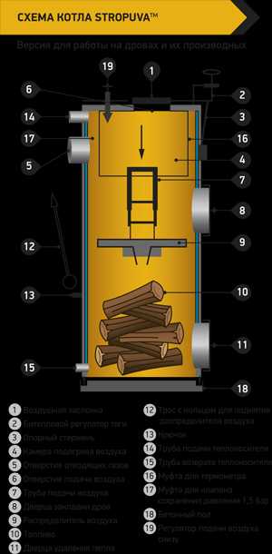 Отсутствие электронных систем управления твердотопливным котлом STROPUVA и процессом горения обеспечивает: