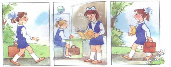 3) мәктәптән кайта, мәктәпкә бара, мәктәптә укый.